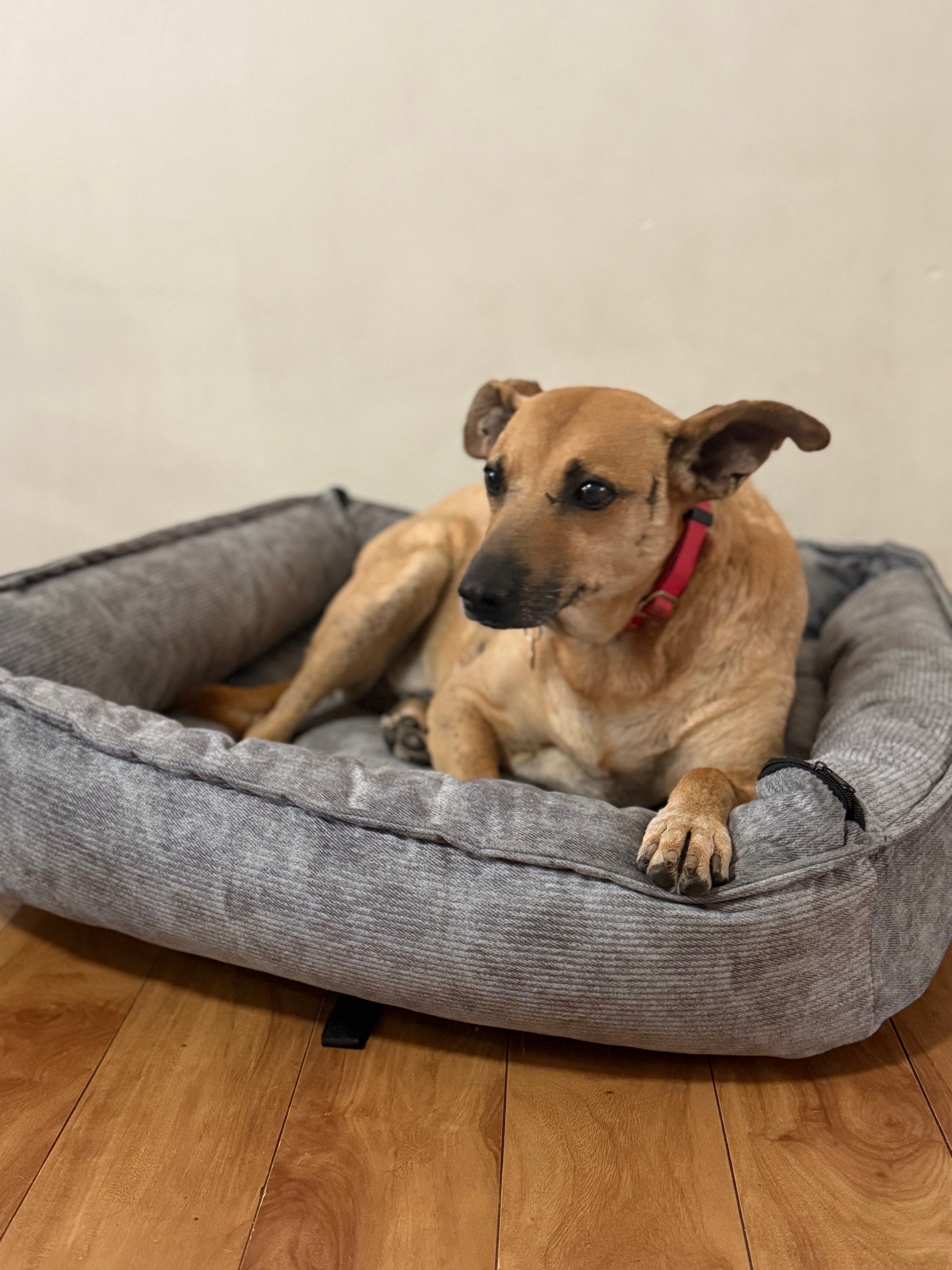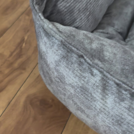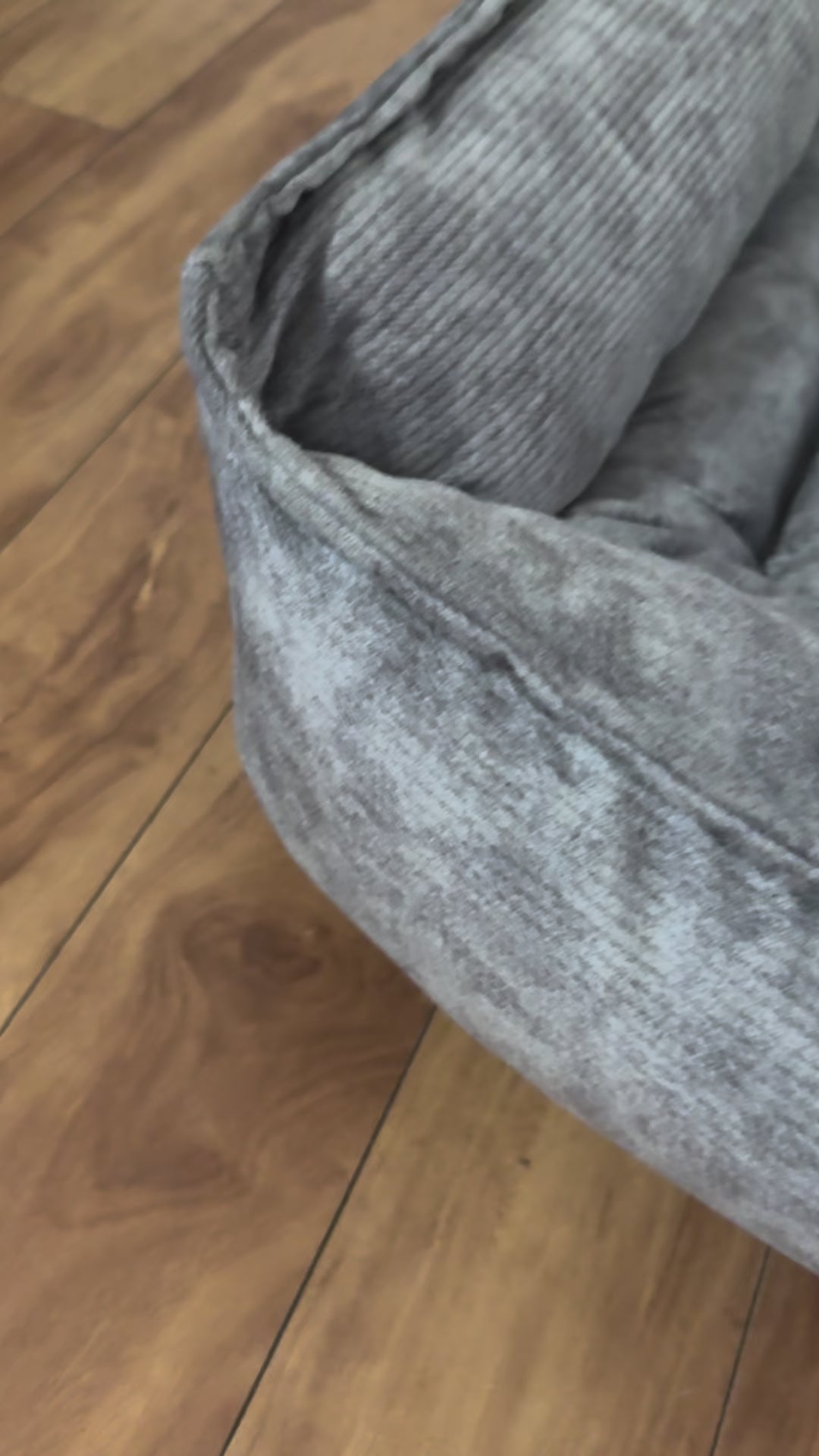Cama gris de perro con tela tipo pana. Dimensiones: 80 cm x 85 cm x 15 cm